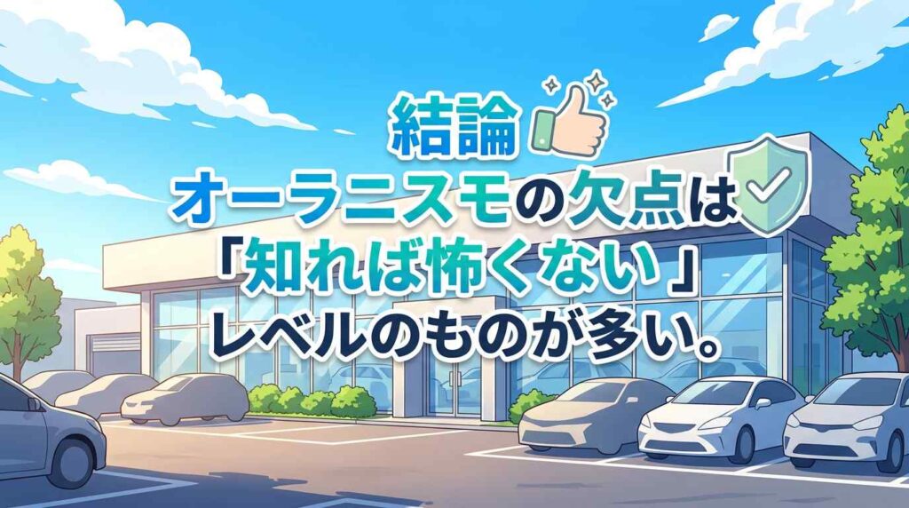 オーラニスモの欠点は対処可能なものが多く、購入前に正体を理解しておけば後悔しにくいクルマです。