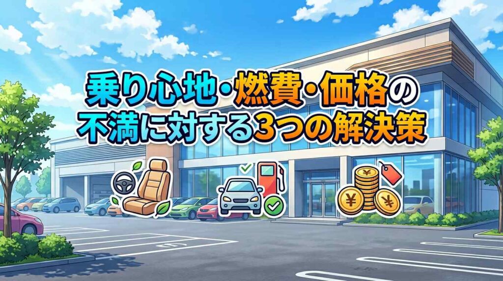 乗り心地の硬さはタイヤ選びで、燃費は走り方の工夫で、価格は装備差の理解でそれぞれ解決の糸口があります。
