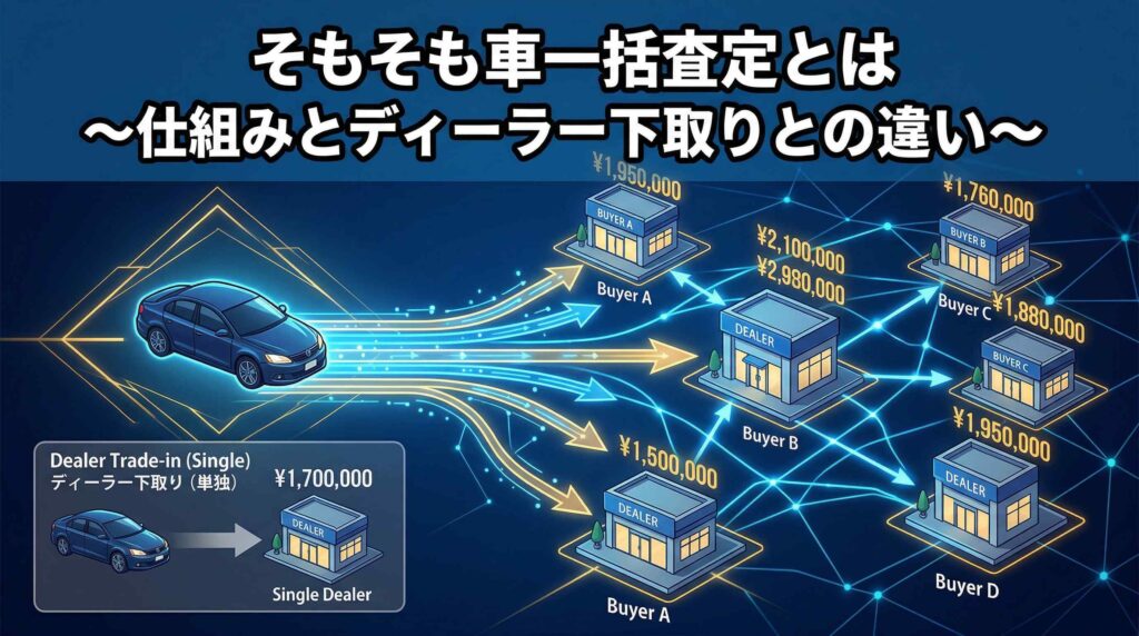 一般的には一括査定のほうが高い査定額がつく傾向にあります。まず一括査定で相場を確認し、その金額をディーラー下取りの交渉材料にするのが賢い方法です。