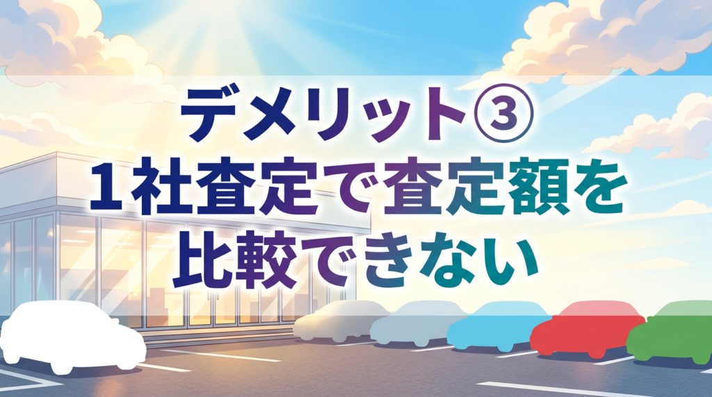 | ③1社査定で比較不可 | 他社の査定額と比較しにくい | 一括査定と併用して相見積もりを取る |