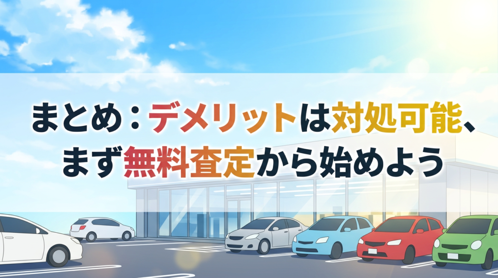 迷っている時間が長いほど車の価値は下がるので、デメリットと対処法を把握して次の行動に移していきましょう。