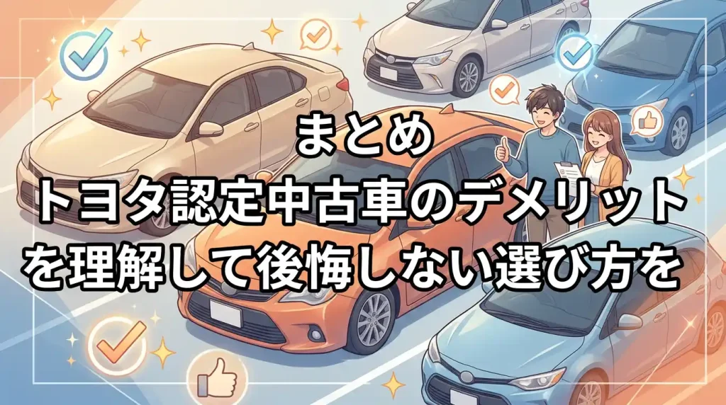 まとめ:トヨタ認定中古車は制度の安心と価格のバランスを見て選ぶ
