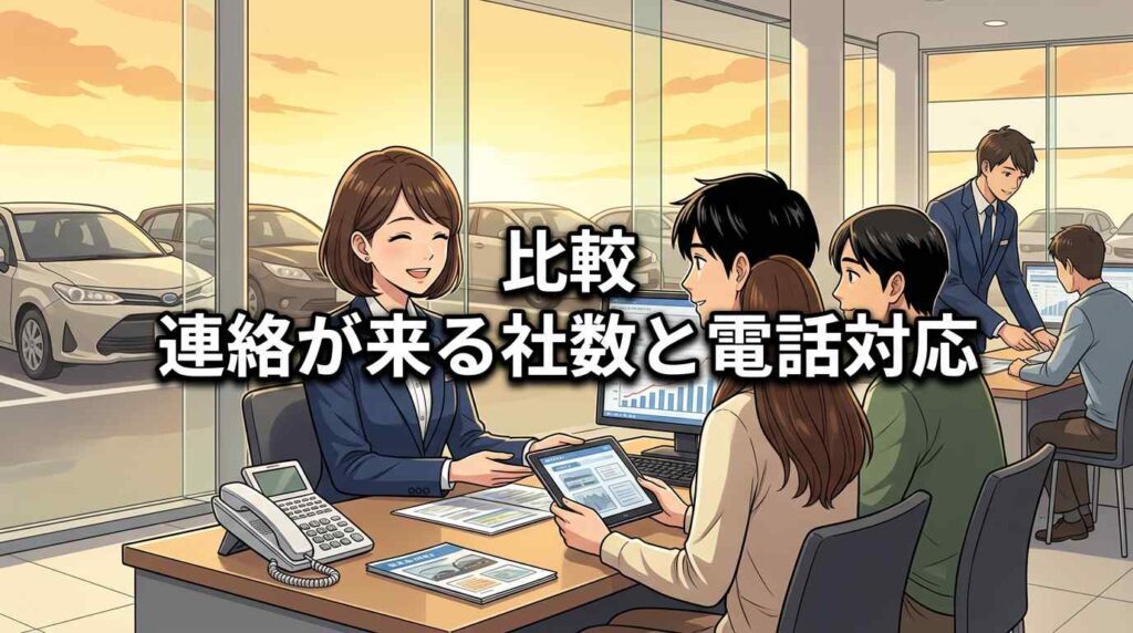 MOTAは上位3社まで電話/メールが来る仕組みです。電話を最小限にしたいなら、窓口1社のユーカーパックの方が向いています。詳細は比較② 連絡が来る社数で整理しました。