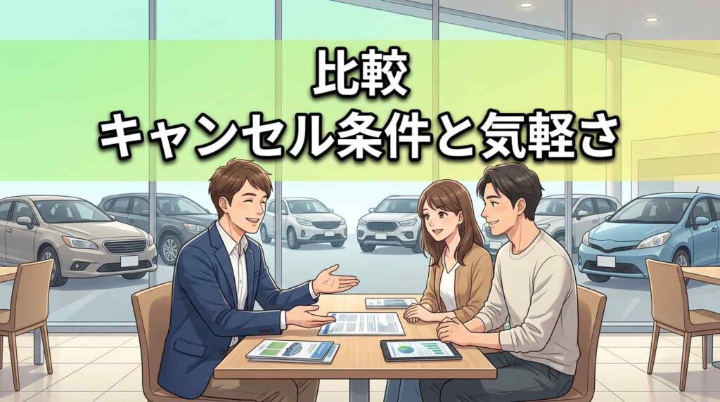 この項目で選ぶなら:契約後も気持ちが変わる余地を残したいならMOTA、入札額の承認権で判断したいならユーカーパック。引き渡し後にキャンセルしたい場面が想像できる方は、MOTAの仕組みが心強い味方になります。