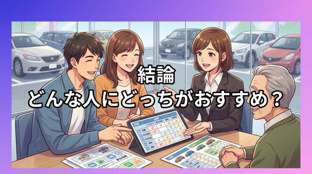 8項目の比較をふまえて、どんな人にどっちが向くかを3パターンで整理します。